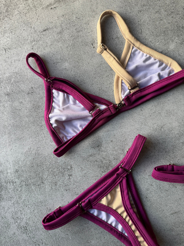Bikini de diseño combinado, pensado para realzar la figura. Confeccionado en tela de excelente calidad que se adapta al cuerpo y acompaña logrando un calce cómodo y sensual