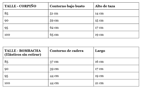 Corpiño con aro, breteles regulables en hombros y doble broche regulable en la espalda (para mayor ajuste).