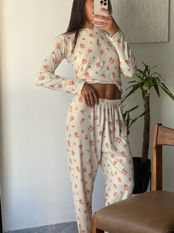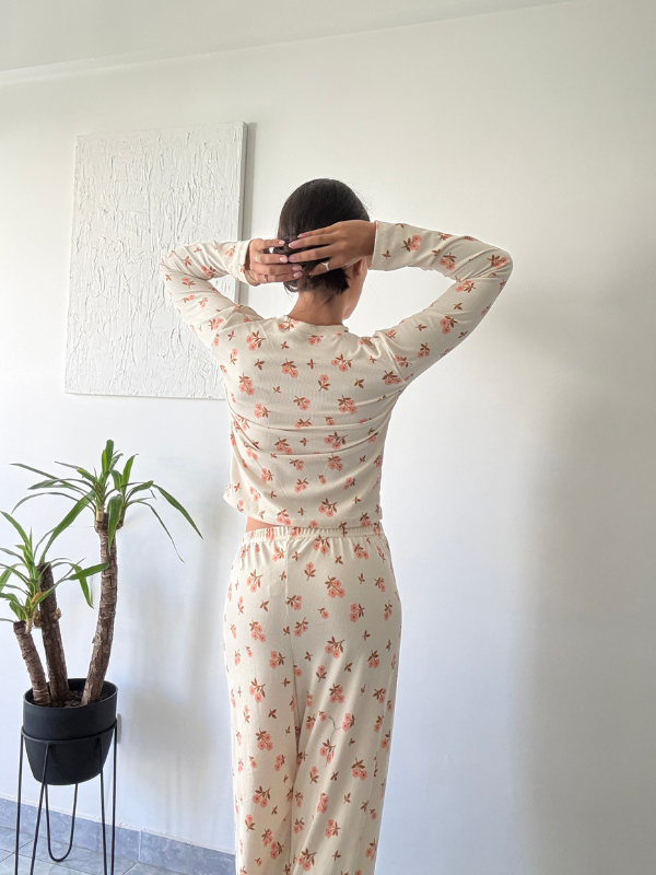 Con calce suelto y pantalón de corte recto que permite moverse con libertad, ideal para descansar y estar en casa.