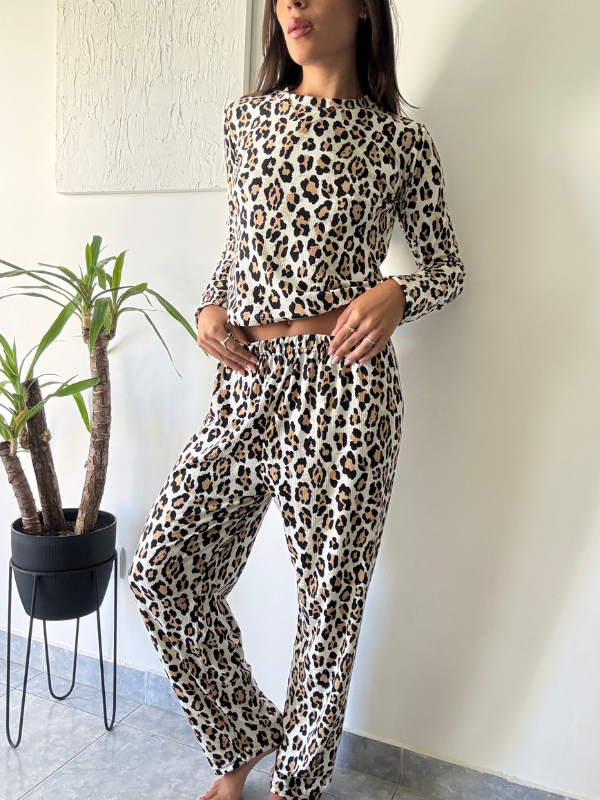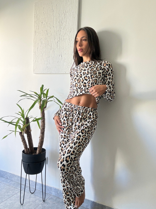 Con calce suelto y pantalón de corte recto que permite moverse con libertad, ideal para descansar y estar en casa.